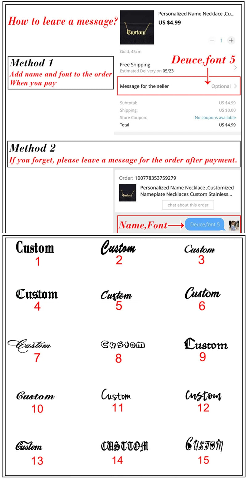 If you forget to add your customization details, you must message us immediately through: