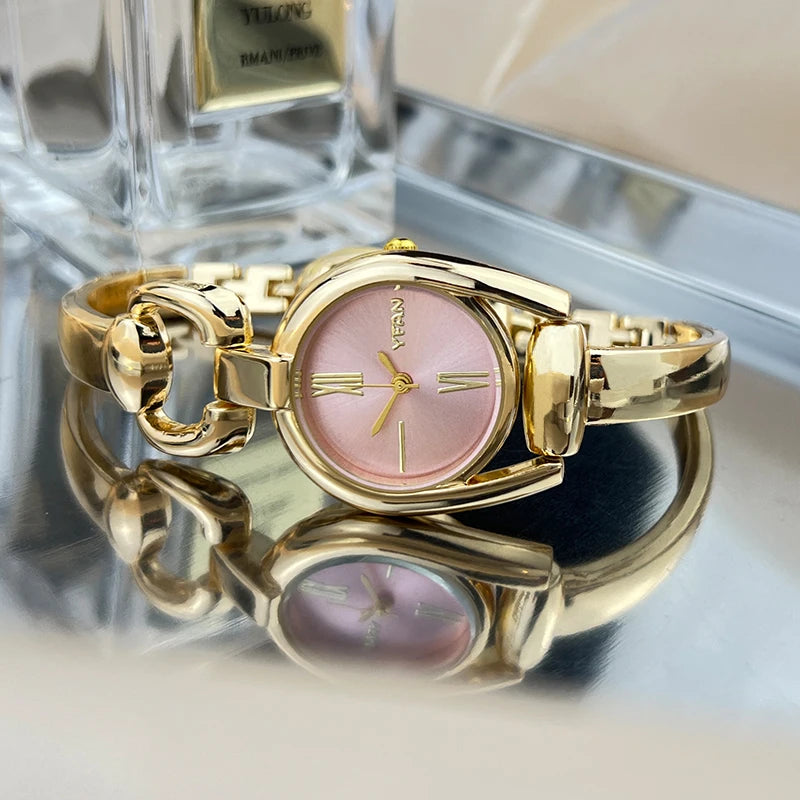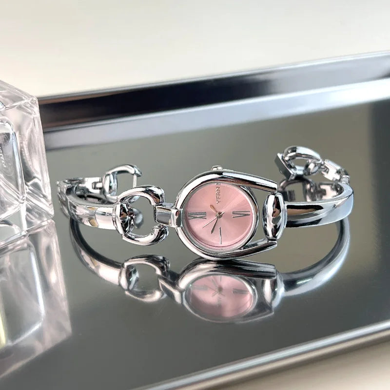 The Retro Button Quartz Watch is designed as both a timepiece and a jewelry statement. Featuring a delicate button-style dial and a polished bracelet strap, this watch adds a vintage-inspired touch to any outfit.